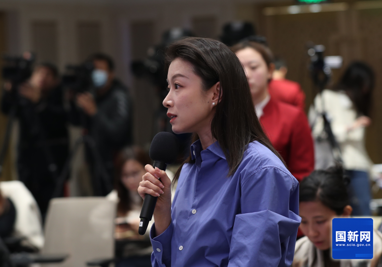 中央广播电视总台央视记者提问(刘健 摄)